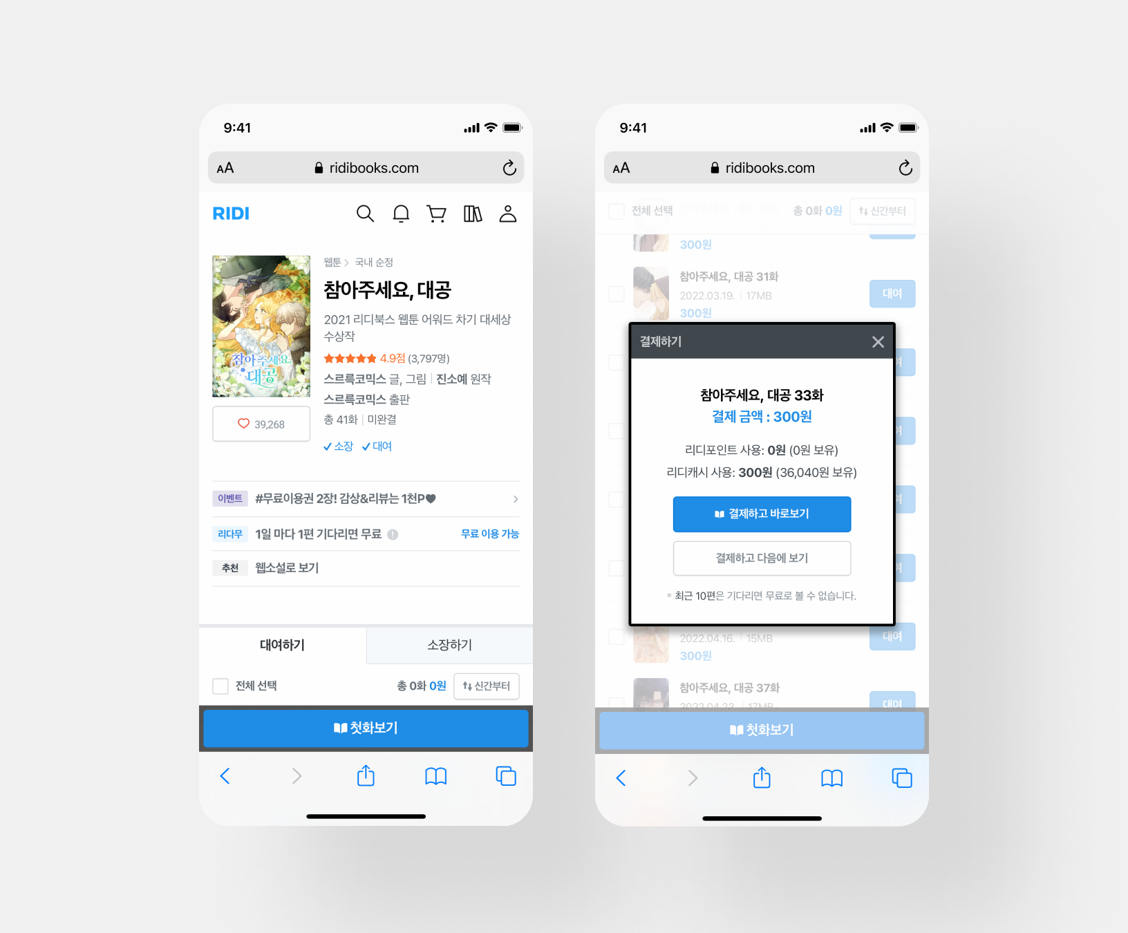 3. 작품을 구매한 리디 계정으로 로그인해주세요.